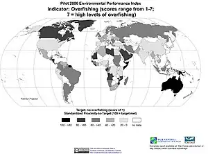 Pescuitul excesiv a epuizat stocurile zonelor piscicole din întreaga lume. Organizația Națiunilor Unite pentru Alimentație și Agricultură a estimat într-un raport din 2018 că 33,1% din stocurile mondiale de pește sunt afectate de pescuitul excesiv.[5] În perioada preindustrială s-a observat o creștere alarmantă a pescuitului. În special, a fost examinat pescuitul excesiv în Oceanului Atlantic de Vest în primele zile ale colonizării Americii de către europeni.[6]