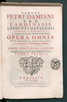 - Sancti Petri Damiani S.R.E. Cardinalis episcopi Ostiensis ordinis S. Benedicti ... Opera omnia ... collecta ... studio ac labore ... Constantini Cajetani ..., 4 vol., 1606-1640;