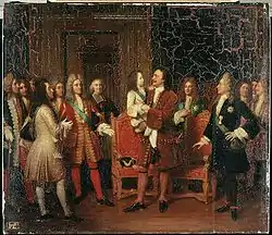 De la 1 septembrie 1715, tronul Franței este ocupat de copilul Ludovic al XV-lea, care-l are alături, ca regent, pe Filip d’Orleans. La 7 mai 1717, Petru își face intrarea în Paris, escortat de 300 de grenedieri călări declarând că vrea să fie primit de regele Franței. A doua zi după sosire, înaintea țarului se prezintă regentul. Totul arată că Petru e nemulțumit. Două zile mai târziu, la 10 mai, regele Franței, însoțit de o numeroasă escortă, merge la hotelul des Lesdiguieres, locul unde se cazase țarul.