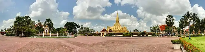 Situată la trei kilometri la nord de centrul orașului, Pha That Luang este o stupa în forma unui pătrat de 35 de metri înălțime, complet acoperită cu aur. Este înconjurată de o mănăstire pătrată prevăzuta cu două intrări și două aripi (din cele patru pe care le-a avut inițial). În imediata vecinătate, au fost construite patru temple budiste moderne (două în partea de vest și două în est)