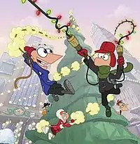 ![]() Phineas și Ferb decorând Denville pentru Crăciun | |||||
