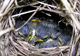 Puii din cuib sunt hrăniți în principal cu omizi și alte larve și cu cantități tot mai mari de muște adulte.[16]