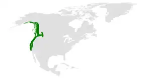Habitatele sale sunt pădurile de conifere și mixte la altitudine joasă din nord-vestul Americii de Nord, din sudul Alaska până în sud-vestul Californiei. Este rezident permanent în arealul său, cu unele mișcări sezoniere în căutarea hranei. De obicei, se deplasează la altitudini mai joase în aceeași zonă la începutul iernii și revin la altitudini mai mari vara.