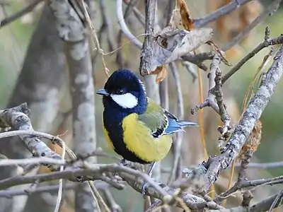 - BirdLife International (). „Parus monticolus”. IUCN Red List of Threatened Species. 2016: e.T22711919A94312022. doi:10.2305/IUCN.UK.2016-3.RLTS.T22711919A94312022.en