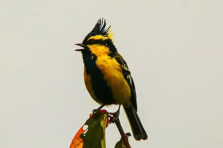 - BirdLife International (). „Machlolophus xanthogenys”. IUCN Red List of Threatened Species. 2017: e.T22711929A118692424. doi:10.2305/IUCN.UK.2017-3.RLTS.T22711929A118692424.en