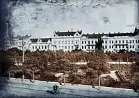 Spațiul construit aferent Pieței Küttel se dezvoltă în timp înainte de restul pieței. În anul 1894, municipalitatea devine proprietar pe terenul fostei esplanade, însă încearcă fără succes să găsească cumpărători pentru noile parcele propuse spre vânzare. Ca soluție la lipsa de atractivitate a zonei propuse spre dezvoltare, municipalitatea decide să realizeze prin fonduri proprii un imobil în cadrul pieței, unind două parcele pe latura de vest a pieței pentru a construi între anii 1896–1897 Palatul Fondului de Pensii al Municipiului, un palat monumental ce funcționa ca o casă de raport.[3] Acțiunea își atinge pe deplin scopul, astfel încât până la sfârșitul anului 1896 sunt vândute cinci parcele din vecinătatea palatului, iar după anul 1901 s-a ocupat cu clădiri și frontul de sud al pieței, aparținând cartierului Elisabetin.[3]