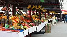 Piața comercială este deschisă zilnic, cu excepția duminicii. Aici se află o piață de flori la intersecția dintre Piața Pogačar și Piața Vodnik(d), o piață de pește și fructe uscate la nivelul inferior al halei și tarabe cu produse de brutărie, produse lactate și carne pe ambele niveluri.[2] Colonada de la capătul Podului Triplu oferă spațiu pentru tarabele la care se vând ierburi, mirodenii și diverse produse artistice și meșteșugărești.[6]