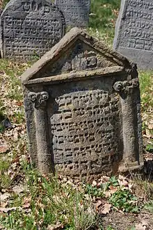 Inscripții ebraice pe pietrele funerare din Sobědruhy, Cehia.