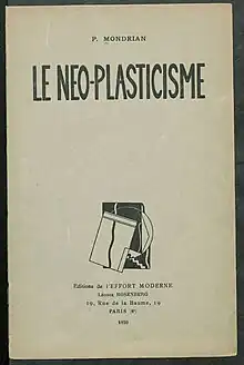 Mondrian a publicat, de asemenea, De Nieuwe Beelding in de Schilderkunst (Noul Plastic în Pictură) în douăsprezece serii în 1917 și 1918. Aceasta a fost prima exprimare semnificativă în scris a teoriei artistice a lui Mondrian. Totuși, cea mai bună și des-citată expresie a acestei teorii vine de la o scrisoare care a trimis-o Mondrian lui H. P. Bremmer în 1914: