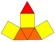 | Fețe | 7 (4 triunghiuri echilaterale, 3 pătrate) |