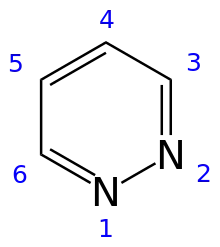 Piridazina este un compus heterociclic care conține doi atomi de azot într-un nucleu de șase atomi, având formula (CH)4N2. Este un compus aromatic.[4] Este izomer cu pirimidina și pirazina.