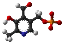 Piridoxal-5'-fosfatul sau fosfatul de piridoxal (PLP sau P5P) este forma activă a vitaminei B6, participând ca coenzimă în multe reacții enzimatice.[3] Activitatea variată a PLP provine de la abilitatea sa de a se lega covalent de substrat, acționând pe post de catalizator electrofil și stabilizând astfel intermediarii de reacție carbanionici.[4]