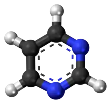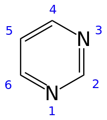 Pirimidina (1,3-diazina) este un compus heterociclic aromatic asemănător piridinei.[1] Cei doi atomi de azot sunt plasați în heterociclu în pozițiile 1 și 3.