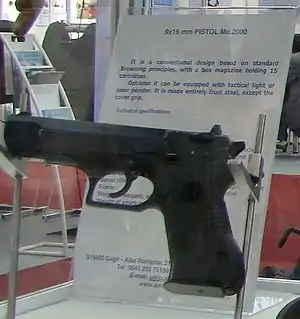 Pistolul calibrul 9 mm Model 2000 este o variantă modernizată a pistolului semiautomat Model 1995, ambele fiind fabricate de către Uzina Mecanică Cugir. Cele două arme de calibrul 9 mm Parabellum au înlocuit vechile pistoale Tokarev TTC și Carpați Model 1974 din dotarea armatei române. Pistolul este o copie aproape identică a modelului israelian Jericho 941. Pistolul Model 2000 este mai ușor cu 90 de grame în comparație cu predecesorul său.