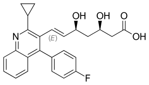 Pitavastatina este un medicament hipolipemiant din clasa statinelor, fiind utilizat în tratamentul anumitor tipuri de dislipidemii.[9][10][11] Calea de administrare disponibilă este cea orală.[9]