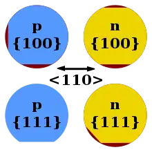 Plăcuțele semiconductoare sunt crescute dintr-un cristal ce are o structură cristalină regulată, siliciul având o structură cubică de tipul diamantului cu o spațiere a rețelei cristaline de 5,430710 Å (0,5430710 nm).[16] Atunci când este tăiat în plăcuțe, suprafața este aliniată într-una din mai multe direcții relative cunoscute ca orientări cristaline. Orientarea este definită de indicii lui Miller, direcțiile cristalografice [100] sau [111] fiind cele mai comune pentru siliciu.[16]