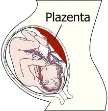 Placenta este un organ fetal temporar care începe să se dezvolte din blastocist la scurt timp după implantare. Acesta joacă un rol esențial în facilitarea schimbului de nutrienți, gaze și reziduuri între circulația maternă și cea fetală, separate fizic și este un organ endocrin important care produce hormoni care reglează atât fiziologia maternă, cât și cea fetală în timpul sarcinii. Placenta este legată de bebeluș prin cordonul ombilical, iar pe partea opusă a uterului matern într-o manieră dependentă de specie. La om, un strat subțire de țesut decidual (endometrial) matern dispare odată cu placenta atunci când este expulzat din uter după naștere (uneori denumit incorect „partea maternă” a placentei). Placentele sunt o caracteristică definitorie a mamiferelor placentare, dar se găsesc și în marsupiale și unele non-mamifere cu diferite niveluri de dezvoltare[1].