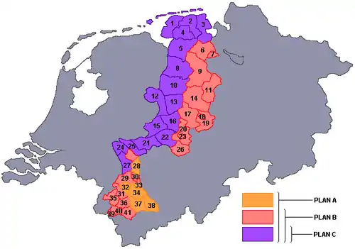 - Varianta A cuprindea toată zona colorată și urma să crească suprafața Olandei cu 50%.