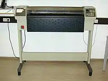 Plotter la care capul de imprimare realizează mișcarea pe una din axe, iar hârtia pe cealaltă