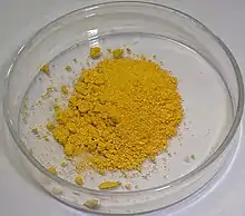 Galbenul-crom a fost prima dată extras din mineralul (crocoite) de către chimistul francez Louis Vauquelin în anul 1809. Mineralul a fost prima dată descoperit în depozitul Berezovsky de lângă Ecaterinburg în munții Urali în 1766 și a fost denumit de către F.S. Beudant în 1832, de la cuvântul grecesc κροκος <krokos>, șofran, ca o aluzie la culoarea sa. Pentru că pigmentul tinde să se oxideze și să se închidă la culoare în timp dacă este expus la aer, și pentru că conține plumb, un metal greu toxic, a fost înlocuit tot mai mult cu un alt pigment, galbenul-cadmiu, în amestec cu portocaliul-cadmiu pentru a produce o culoarea asemănătoare cu galbenul-crom. Galbenul-crom se produce prin amestecarea soluțiilor de nitrat de plumb și cromat de potasiu, și filtrând precipitatul de cromat de plumb.