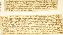 - (în română Noi Sigismund prin grația lui Dumnezeu Regele Romanilor întotdeauna August, și al Ungariei, Boemiei, Dalmației, Croației etc. […] Că credincioșii noștri venind în prezența Majestății noastre […])