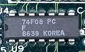 - 74LS08: Poarta AND (patru porți pe CI) cu 2 intrări - varianta Schottky de putere mică