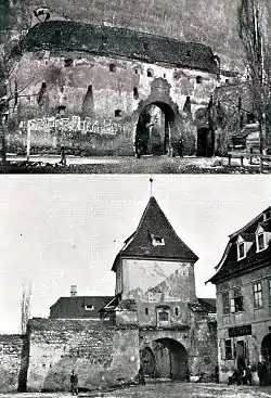 Poarta Străzii Negre dinspre exterior (sus) şi dinspre interior (jos)