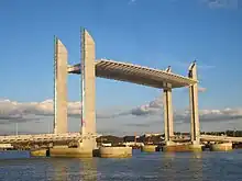 Secțiunea centrală a podului Giurgiu-Ruse permite ridicarea pe verticală.