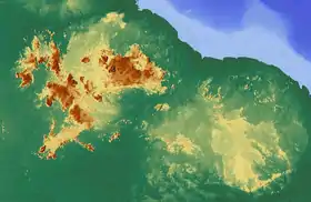 Existența granitelor și cuarțitelor (roci mai dure) a dus la apariția martorilor de eroziune și a pragurilor în lungul văilor, datorită eroziuni diferențiate. Altitudinea sa maximă (2994 m) este atinsă în Pico da Neblina, localizat în Brazilia.