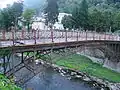 Podul a fost construit odată cu Băile Imperiale Austriece, între 1883 și 1886, fiind destinat traficului pietonal. Are o lățime de 2,90 m și o lungime de 32 m, având o structură pe arc cu zăbrele cu două articulații și montanți verticali din cornier placați cu elemente din fontă, iar parapetul podului este din fier forjat cu elemente decorative.