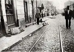 În următoarea zi, „Duminica neagră”, soldații români au împușcat mii de evrei care fuseseră încarcerați în secția de poliție.[26].