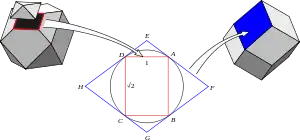 În acest exemplu, dimensiunea figurii vârfului a fost aleasă astfel încât cercul său circumscris să se afle pe sfera mediană a cuboctaedrului, care devine și sfera mediană a dodecaedrului rombic dual.