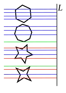 Folosind terminologia de la funcție monotonă, prima definiție descrie poligoane strict monotone față de L. Expresia „față de” este necesară pentru a face deosebirea dintre strict/nestrict: un poligon nestrict monoton față de L este strict monoton față de o dreaptă L1 rotită față de L cu un unghi suficient de mic.