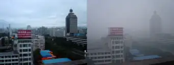 - Oxizii de azot (NOx): Oxizii de azot, în special dioxidul de azot, sunt expulzați din arderea la temperaturi ridicate și sunt, de asemenea, produși în timpul furtunilor prin descărcare electrică. Ele pot fi văzute ca o cupolă maro de ceață deasupra sau ca un penaj în aval de orașe. Dioxidul de azot este un compus chimic cu formula NO2. Este unul dintre câțiva oxizi de azot. Unul dintre cei mai importanți poluanți ai aerului, acest gaz toxic maro-roșcat are un miros caracteristic ascuțit, mușcător.