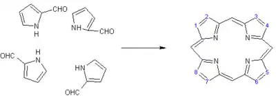 Porfina este un compus cristalin care nu se topește pînă la 360°, cînd începe să se descompună. Porfina a fost sintetizată prin încălzirea α-pirolaldehidei cu acid formic, sinteză realizată de H. Fischer în 1935.