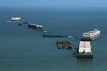 Ponton al unui port „Mulberry” distrus în urma furtunii din 19–22 iunie 1944.