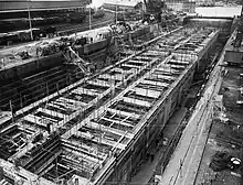 Părțile componente a două porturi prefabricate au fost transportate peste Canalul Mânecii din sudul Angliei și ansamblate în dreptul plajelor Normandiei ca parte a debarcărilor din Ziua Z[1]