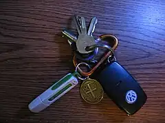 În mod normal se compune dintr-un inel metalic, uneori un lănțișor metalic și cel mai adesea o piesă cu rol decorativ sau inscripționată cu locația căreia îi este destinată cheia (ex: magazie, birou, sală de ședințe etc).