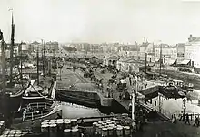 O nouă poartă a fost realizată la capătul docului Comerțului, în dreptul podului care delimitează cele două canale, cel spre Anvers și cel spre Bruxelles, în zona cuprinsă astăzi între Piața Sainctelette și Piața Yser. Sub Regatul Unit al Țărilor de Jos, această poartă avea rolul de colectare a taxelor vamale și era alcătuită din două pavilioane construite după planurile arhitectului Auguste Payen (1832–1836), asemănătoare celor pe care acesta le proiectase în aceeași perioadă la Poarta Ninove. La fel ca și celelalte porți, ea și-a pierdut această funcție odată cu abolirea, pe 21 iulie 1860, a vămuirii produselor care intrau în oraș[9][10], dar cele două pavilioane construite în stil neoclasic au rămas pe amplasament până la crearea unui nou port maritim, în 1910, când au fost demolate.