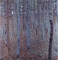 Prin alegoria femeilor, care apar în tablouri ca „Nuda Veritas” (1899) sau „Danae” (1907), reprezentate sub chipul unor frumoase roșcate, Klimt evidențiază preocuparea sa pentru temele erotice. Faptul că împrumută teme din mitologie atenuează caracterul lasciv al compozițiilor. Tablourilor sale le este foarte caracteristică paleta întreagă a culorilor deschise și pure. Renunțând complet la perspectivă, pictorul așază formele decorative în același plan cu siluetele personajelor.