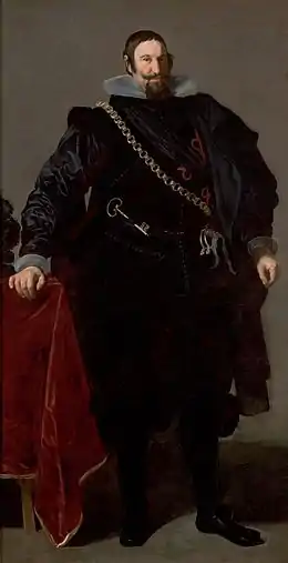 Personajul din portret este Gaspar de Guzmán y Pimentel, contele-duce de Olivares, un om politic și nobil spaniol, conte de Olivares și duce de Sanlucar la Mayor, un favorit al regelui Filip al IV-lea.