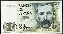 Prima prezentare publică documentată a portretului lui Galdós a avut loc în vara anului 1906 în cadrul expoziției „Sorolla y Bastida” de la „Galerie Georges Petit” din Paris, unde tabloul a fost prezentat sub titlul „Portrait du Romancier Pérez Galdós”.[2][4] O jumătate de secol mai târziu, în 1963, tabloul era expus în Casón del Buen Retiro din Madrid.[2][4] Portretul a fost achiziționat în iulie 1973 de la nepoții romancierului de Cabildo de Gran Canaria[2][4][5] pentru a fi expus în Casa-Museo Pérez Galdós din Las Palmas de Gran Canaria,[2] iar cinci ani mai târziu a devenit foarte popular atunci când Fábrica Nacional de Moneda y Timbre (Monetăria Spaniolă) l-a ales pentru a ilustra bancnotele de 1.000 de pesete ale seriei emise între 1979 și 1985.[2][4]