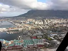 Navigația Limitele portului la W de aliniamentul dintre Green Point si farul Robben Island si la N de aliniamentul dintre partea de E a farului Robben Island până la țărmul de E al golfului Table, până la S de marcajul de apa înaltă, atât încât sa includă partea din fata a țărmului până la Castle si partea din spate a farului Green Point. Balizajul este compus din următoarele elemente: a) baliza Racon având un relevment de 1700 (T)fata de dig, este Racon de NW si bate la distanta de 1.9 Mm. Canalul este dragat in partea de SE si este marcat de baliza luminoasa. b) o pereche de balize luminoase 1 si 2, marchează celălalt capăt al canalului. Trebuie evitată baliza Whale Rock in pozitia 330 50’4 S, 0180 23’2 E. Pilotaj Obligatoriu. Cu 1 ora iante se anunță Capitania Portului prin radio VHF pe canalul 16 sau 12. Pilotina este dotată cu multicanale VHF. Pilot la bord la intrarea in port. Ancoraj Nu sunt zone speciale de ancoraj. Ancorajul este interzis pe canalul dragat si invecinari până la 2 Mm NNW de baliza luminoasă a digului. Remorcaj Remorcherele se alătură navelor la aproximativ 0.25 Mm de intrarea in port. Principalele ajutoare pentru navigație Exista 3 faruri: Mouille Point, Robben Island si Milnerton. 3 canale cu balize si 1 baliza pentru ape periculoase. Restrictii Navelor nu le este permisă intrarea in port, până când agentul nu a fost anunțat. Tancurile petroliere si navele care transporta explozivi sau mărfuri periculoase au restricții la primele ore ale zilei. Densitate:1025 Maree:Inaltimea la sizigii:max 1.8 m, min. 1.6 m, iar la cuadratura: max 1.2m, min 0.6 m. Timp:GMT + 2 ore. Dane si marfa Portul este alcătuit din 4 bazine principale: bazinul Victoria, bazinul Alfred, docul Duncan si docul Ben Schoeman, toate protejate de diguri. Ancorajul e bun in zona.