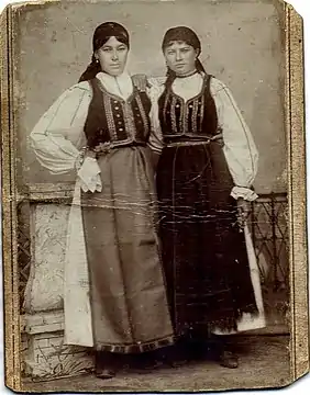 La costumul femeiesc, piesele "de rezistență" au fost: vălitoarea albă, cârpele negre sau înflorate, "șurțele"(șorțurile) negre sau "vinete", în două sau trei foi, catrințele roșii, "românești" sau "oacheșe", iile cu fodori, pieptarul cu flori roșii și "ciucurei" în aceeași tonalitate, buboul negru sau săin, nelipsit din portul bătrânelor.