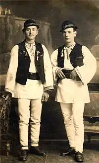 - Cămașa, lungă până la genunchi în trecut și mai scurtă în vremurile mai apropiate(secolul al XX-lea), cămașa se purta peste cioareci, încinsă cu șerparul. La gât, aceasta se încheia cu copcii sau foarte rar, cu băieri prevăzute la capete cu ciucurași.