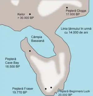 În perioada dintre 18.000 și 15.000 de ani a crescut ariditatea continentului printr-o scădere a temperaturii combinată cu o scădere în precipitații, într-o măsură mai mare decât anterior. La sfârșitul pleistocenului, cu aproximativ 13.000 de ani în urmă, legătura cu Strâmtoarea Torres, Câmpia Bassiană dintre actualele Victoria și Tasmania precum și legătura cu Insula Cangurului au început să dispară sub acțiunea nivelului tot mai crescut al oceanului. Începând cu acest moment, aborigenii tasmanieni erau geografic izolați. În urmă cu aproximativ 9.000 de ani, populațiile de pe insulele mici din Strâmtoarea Bass ca și cele din Insula Cangurului nu au supraviețuit.