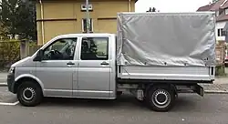 VW Transporter T5 cabină dublă, cu prelată pentru a acoperi încărcătura