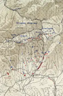 Pentru atacul pozițiilor românești, comandamentul german destinase o grupare de forțe comandantă de generalul Paul von Kneussl, compusă din Divizia 11 Infanterie Bavareză, Divizia 6 Cavalerie germană, Brigada 114 Infanterie austriacă și două batalioane de cicliști, sprijinită de 22 de baterii de artilerie.[4]:pp 441-444