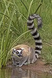 - Familia Lemuridae: lemurieni cu coada inelată și altele asemenea (21 specii)