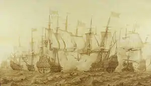 ![]() Bătălia de la Scheveningen, 10 august 1653 tablou pictat de Jan Abrahamsz Beerstraaten, c. 1654, înfățișează ultima bătălie din Primul Război Anglo-Neerlandez | |||||||